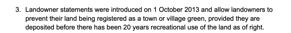 Spot the difference – it’s the right of the local community not just to use the space around the land (what does that even mean?) but the whole of the land that is not actually being used as a sports pitch, and in a way that is acceptable to all (not unilaterally imposed by Cotham School).