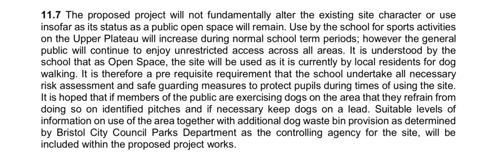 This is why the fence erected by Cotham School in early 2019 (in full knowledge that TVG applications were in process) must now be removed. We were pleased that Cotham announced on 11 August that the pedestrian gates around the field will now be permanently unlocked, 24/7 – but more needs to be done. Ongoing use and enjoyment of the green is interrupted by over 450 fence panels and posts, and this is more than an academic point since the pedestrian gates have never been access-friendly for users with mobility issues, and have never been sufficient in number or placed in the right locations. And if you’re stuck in the nettles and brambles on the narrow perimeter outside the fence, your enjoyment of the rest of the green is definitely interrupted by the fence panels barring your way! Physically as well as visually, the fence is detrimental to the use and enjoyment of this historic parkland.