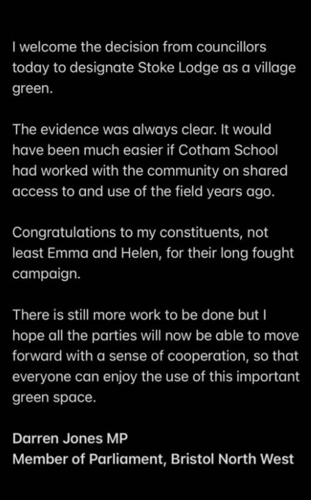If perimeter fencing is not a ‘requirement’ (it isn’t), and Ofsted simply requires ‘reasonable and proportionate’ approaches to safeguarding (it does) then there is no ‘need’ or ‘necessity’ for a perimeter fence. Every parent teaches their children the difference between ‘needing’ and ‘wanting’. Cotham School wants a perimeter fence, that’s very clear. But it may not be able to have one at Stoke Lodge because of restrictions in the lease and the law (public rights of way) and other matters. And that’s ok, because as Ms Butler also admitted in court, other schools manage to safeguard pupils effectively on open access playing fields, and there’s no reason why her staff can’t do the same. Or Cotham could fence an area for its own use, within a larger open field in which pitch layouts aren’t impeded by fencing – that’s what they currently hire at Golden Hill, after all. Perhaps despite all the legal turmoil, a compromise is staring everyone in the face!